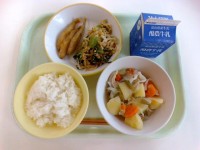 10月29日(水)の給食ごはん、牛乳、にしんのみぞれに、よごし、じゃがいものそぼ...