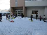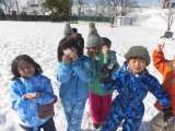 今日は天気も良さそうだったので、全員でグラウンドに出て雪遊びをしました。下学年...
