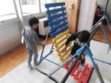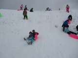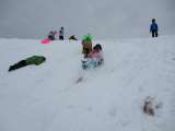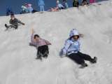 とてもよい天気の中、グラウンドで雪遊びをしました。土手の傾斜を使って、勢いよく...