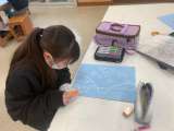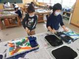 シールローラー版画に挑戦しています。今日は、最後の仕上げに、台紙全体を黒色や紺...