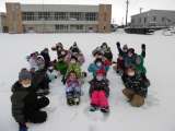 グラウンドの新雪の上で雪遊びをしました。最初は「寒い」と言っていた子供たちも、...