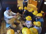 ビニルハウスの中では、採れたての水菜の袋詰め作業を見せていただきました。子供た...