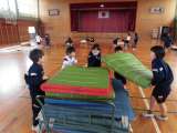跳び箱あそびの学習をしています。今日で4回目の学習ということもあり、準備や片付...
