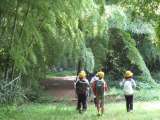 竹ジャングルでは、自然の中の遊具で思い切り遊びました。疲れ知らずの子供たちです...