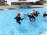 水泳学習が始まりました。安全に学習するための決まりを確認した後、4年生と一緒に...