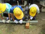 竹の箸作りをしました。のこぎりやなた、小刀を初めて使う子がいましたが、自分だけ...