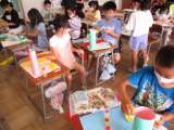 図工では、光の形を楽しんでいます。テーマは「夏」です。子供たちは、自分の思う夏...