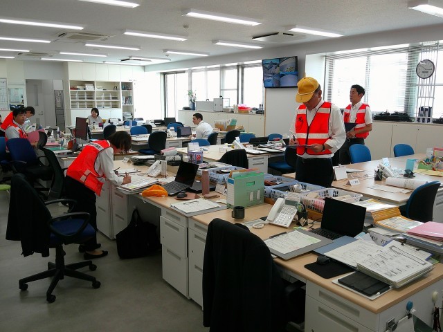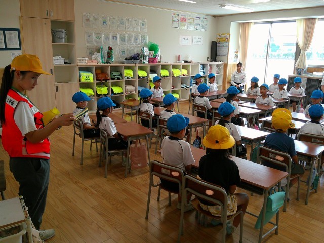 訓練で子どもたちは、地震の際の危険回避の基本動作である「まず低く、頭を守り、動かない」を実践しました。子どもたちは、窮屈な状況の中でも、基本動作を守り、被害に遭わないような姿勢を保っていました。防災に対する意識を高めるよい機会となりました。