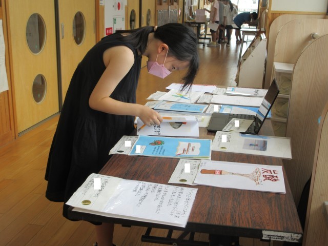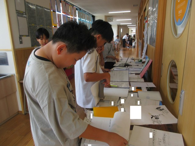 夏休みの自由研究では、一人ひとりの興味や関心のあることをテーマに、子どもたちは様々なことに取り組みました。教室前には、その成果を感じられる作品がたくさん並べられました。子どもたちは、仲間の作品を鑑賞し、研究結果に驚いたり、まとめ方の工夫を見付けたりしていました。