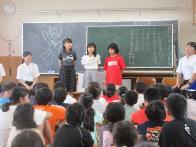 3週間の教育実習が始まりました。子どもたちは、個性溢れるクラス紹介をしたり、先生方への質問コーナーを盛り上げたりと、楽しい集会をつくっていました。