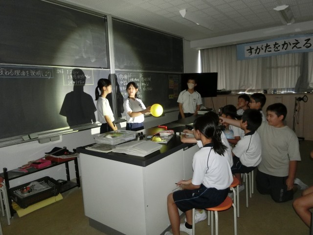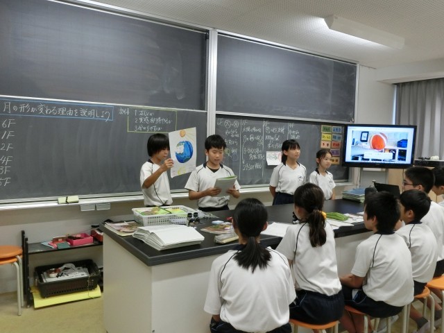 各ファミリーで物や絵を準備しながら他の仲間に月と太陽の関係について説明をしました。それぞれの話を聞きながらノートにメモをとる姿もありました。