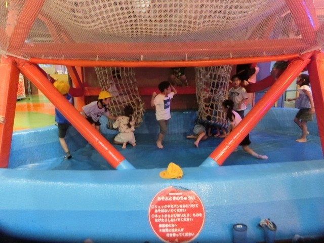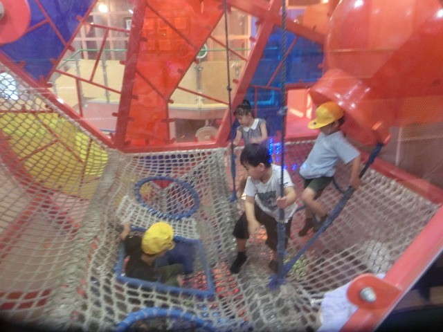 広い館内に巡らされた網やトンネルの遊具で思いっきり遊んでいます。「こどもみらい館って楽しいね!」と嬉しそうな表情が見られました。