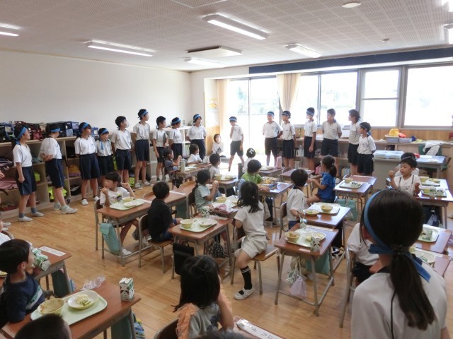 6年生の青団が各学年の青団に運動会に向けて「優勝するぞ!」という熱い思いを伝えに行きました。各クラスで「エイエイオー!!」のかけ声をし、気持ちを高め合っていました。