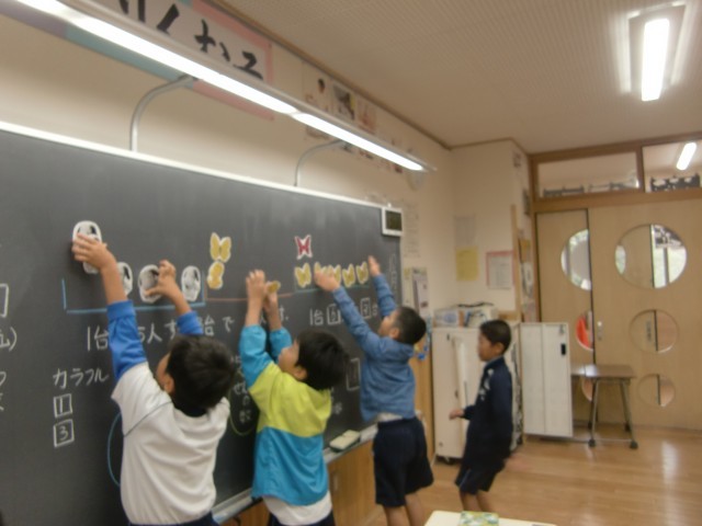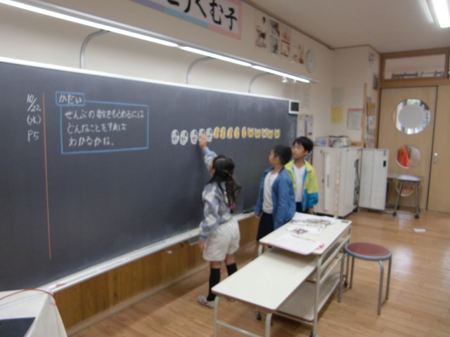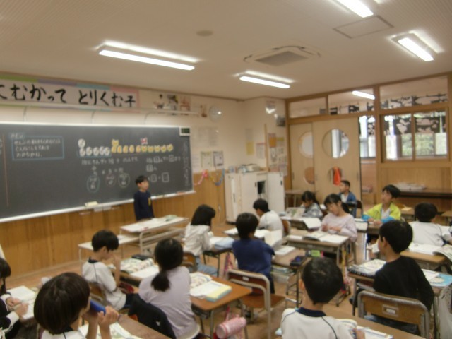 「新しい計算を考えよう」の学習に取り組んでいます。子どもたちが黒板に教材を掲示し、仲間同士気が付いたことを伝え合いました。そして、「1つ分の数」と「いくつ分」がわかれば全部の数を求めることができることに気が付きました。学習の後は自ら黒板の文字を消し、楽しく片付けをする子どもたちの姿でした。