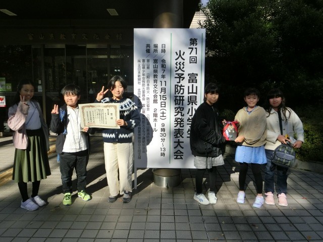 5年生の代表児童が火災予防研究発表大会に参加しました。これまで活動してきた「堀川火の用心プロジェクト」について堂々と発表を行いました。