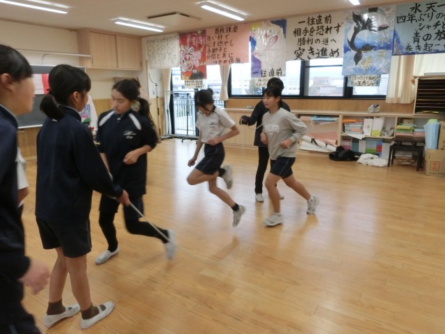 6年生は長縄の練習を頑張っています。先日、行われた校内予選大会もチームの仲間と心を通い合わせながら跳んでいました。校内予選を通過したチームは来年の市大会に向けてさらに練習に励もうとしています。