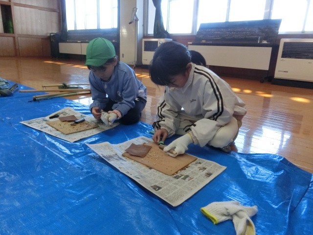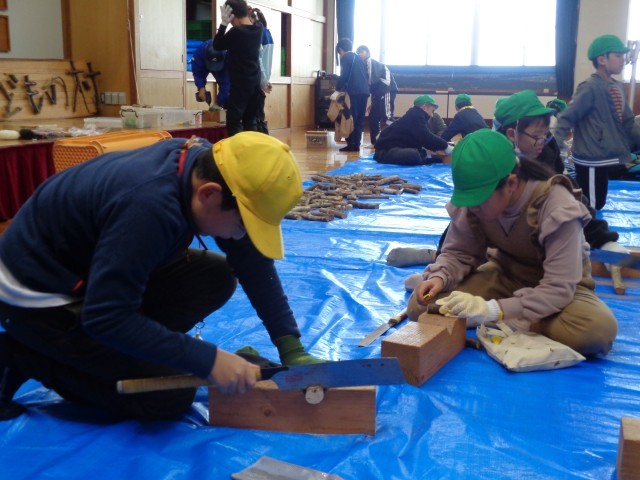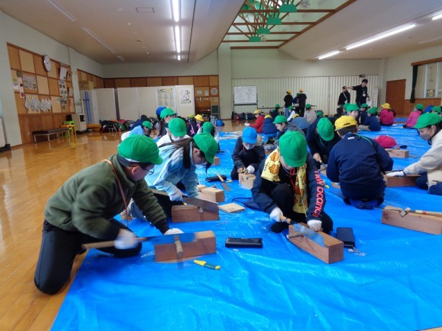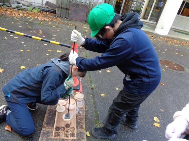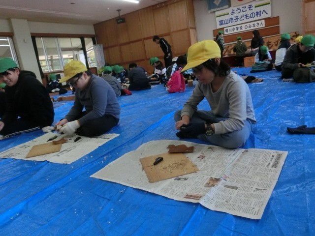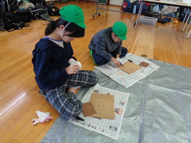 2日目午前中の活動は、木工クラフトを行いました。キーホルダー、コースター、小枝ペンから選んだものを一人ひとりが思い思いの作品に仕上げました。