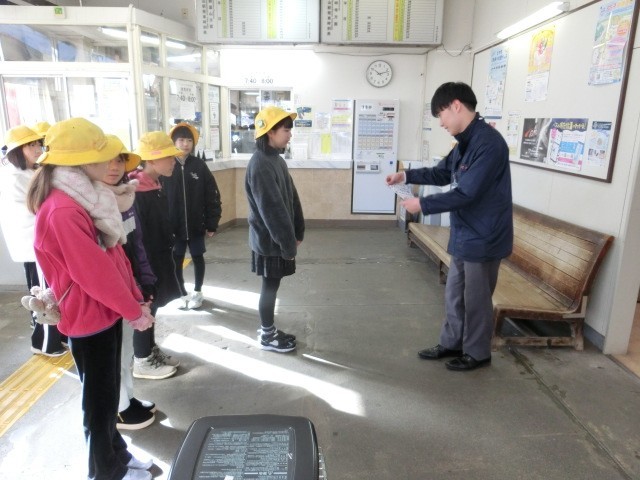 総合的な学習の時間では「堀川火の用心プロジェクト」を行っています。地域グループは、火災予防を呼びかけるチラシの配布を企画し、南富山駅の駅員さんに活動のお願いに行きました。火災が多くなる季節、子どもたちは火災0のまちを目指して、今日も活動しています。