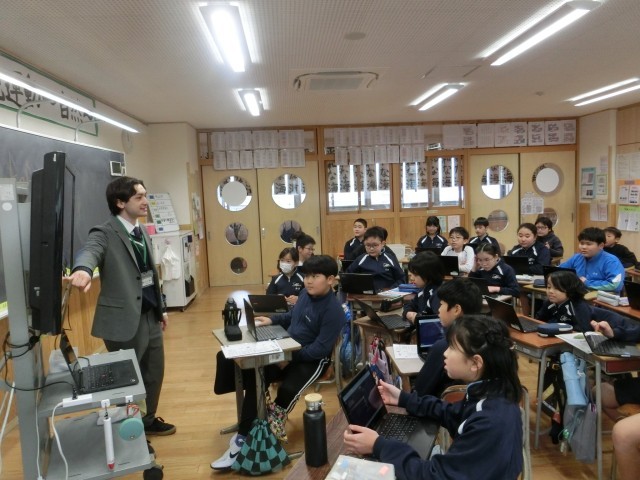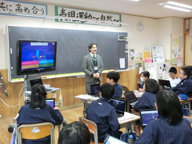 3学期最初の外国語の授業では、これまでの学習内容を復習するクイズに挑戦しました。3学期もALTの先生との授業を楽しみにしている子どもたちです。