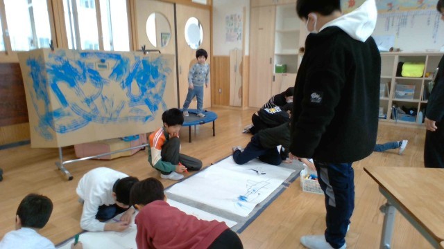 「マジックを使うときに気を付けることは、床にマジックを付けないことです。そして、一番大事なことは、黒板に描かないことです。黒板に付いたマジックは絶対とれません」と、力強く説明していました。楽しく遊ぶためのルールを、的確に伝える姿に感心しました。