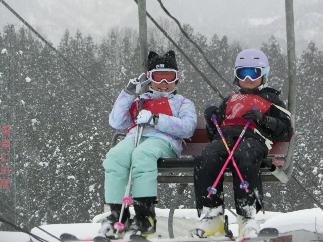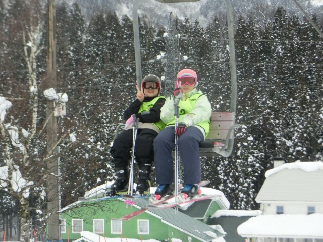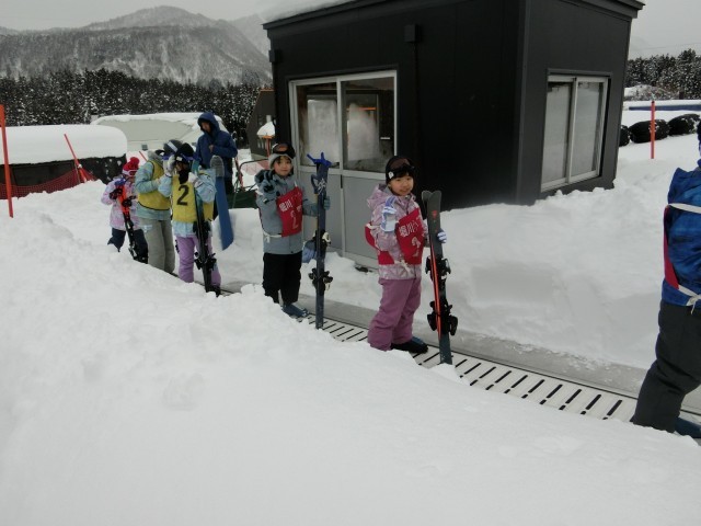 午前中のスキー講習の様子です。天気も良く、子どもたちは気持ちよさそうにスキーを楽しんでいました。リフトやベルトコンベアにもたくさん乗車することができました。