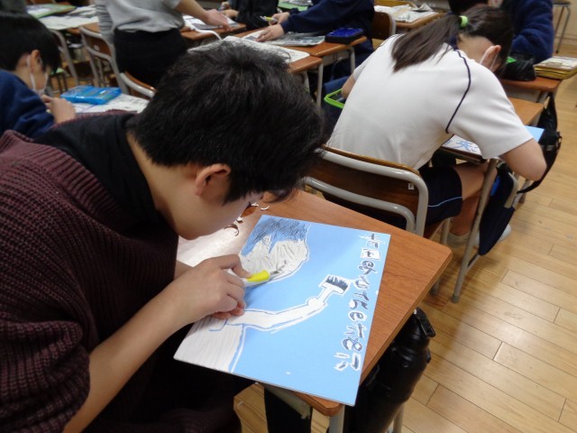 2月14日(土)学習の発表会で教室前と体育館渡り廊下に掲示します。どうぞご覧ください。
