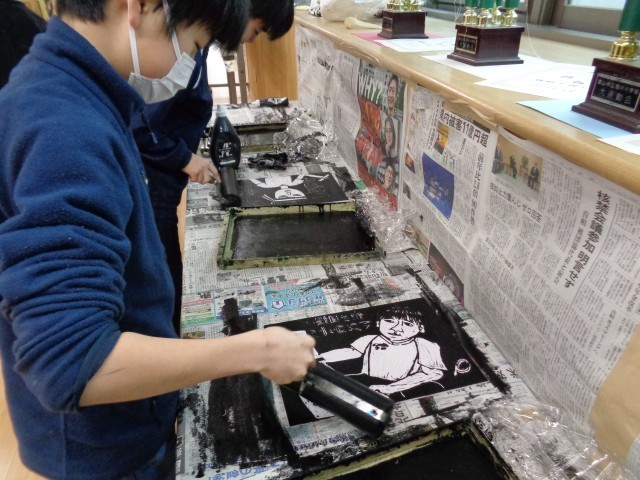 6年生の1年間を振り返り、自分らしさが表れる場面を版画に表しています。