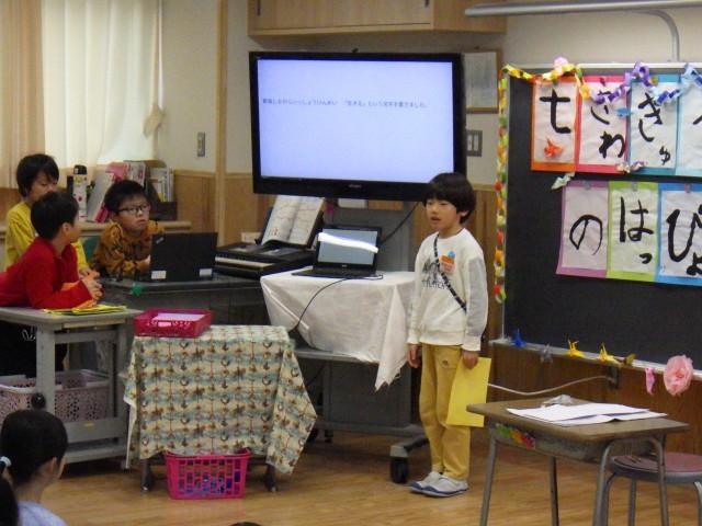 2月14日(土)に学習の発表会を行い、多くのご家族の方にご参観いただきました。子どもたちは、この日のために、一年間頑張ってきたことや成長したことを自分で確かめ、発表の仕方を考えて何度も練習してきました。当日は、緊張しながらも、仲間や参観してくださる方からたくさんの拍手をいただき、満足そうに自分の成長を実感している子どもたちでした。