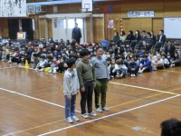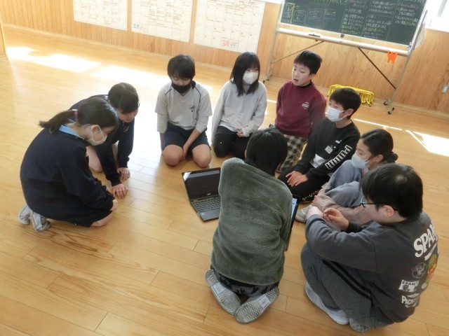 4年生と一緒に、卒業式に歌う校歌の練習をしました。卒業式からは、4年生と5年生がオブリガードを歌い、主旋律をより引き立たせます。