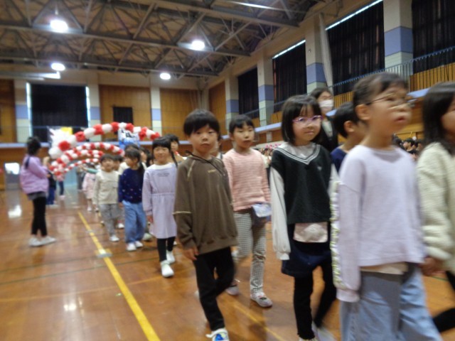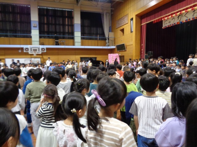 2年生は、1年生と手をつないで入場する役割でした。「静かに待つよ」「落ち着いて歩こうね」と優しく声をかける姿にお兄さん、お姉さんとしての成長を感じました。初めて一年生と一緒に歌った校歌は、迫力がありました。