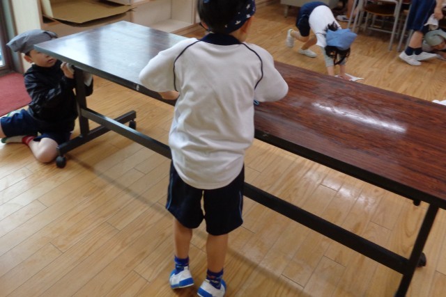 朝活動では、見つけたところに働きかけています。初めは床の雑巾がけをする子どもが多かったですが、だんだんと気になるところが見えてきて、今日は自分で見付けて働きかける子どもが増えていました。