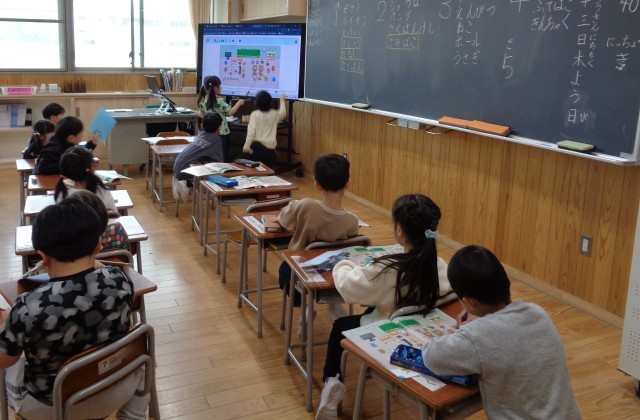 授業でも、気付きを大切にする子どもたちです。「机は4つ?5つ?6つ?」自分たちで課題に出合い、納得を求めて聞き合いました。