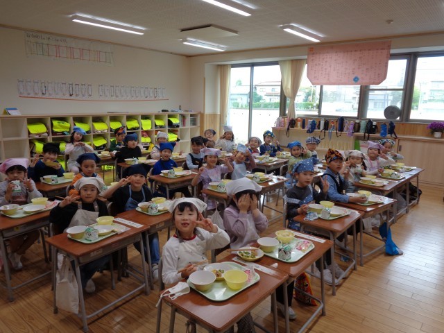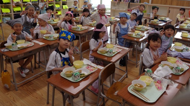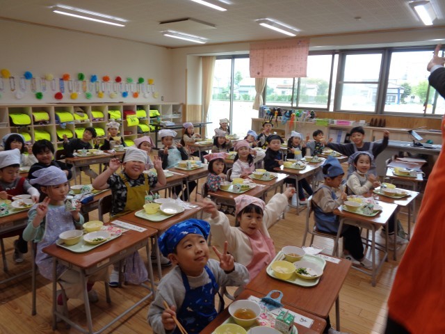 「今日の給食はちらし寿司だね」「お祝い献立楽しみだね」「給食まだかな」「今日は唐揚げが楽しみで来た」等、朝から給食が楽しみな1年生でした。