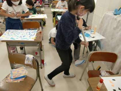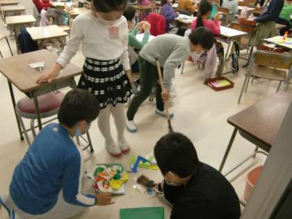 楽しく活動した後は、いつもながら後片付けや掃除を丁寧に取り組む皆さんです。次回の図画工作科の時間も楽しみにしている、何でも頑張る皆さんです。