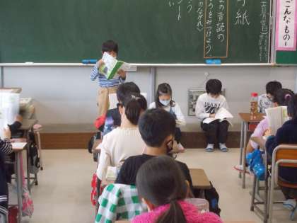 学習参観で「お手紙」の音読げきを行いました。家の人の前で緊張していましたが、しっかり声を出して音読をすることができました。音読げきの後の感想を聞くと、「緊張したけど、終わってみたら楽しかった」と言っていました。中には「また、音読を頑張っていきたいです」と次への意気込みを語っている子どもの姿もありました。