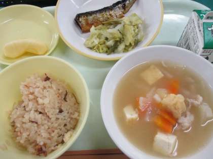 11月24日は、和食の日です。和食の基本は、「だし」です。だしは、食材のうまみをとりだした汁のことで、和食の味の基本になっています。日本のだしは、おもに昆布やかつおぶし、にぼし、ほししいたけなどの乾燥した食品でとります。だしを使うと、塩分を減らすことができます。給食にも「だし」が使われています。このメ献立は、どんな「だし」が使われているのか想像しながら食べるのもいいですね。