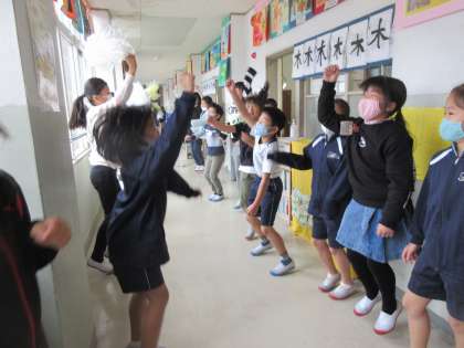 リズムタイム楽しかったよ(3年生) 公開日 2020/11/29 更新日 2020/11/29 3年生 26日(木)の大休憩に集会委員会とダンスクラブの人たちがリズムタイムを拓いてくれました。曲に合わせて体を動かす楽しさを感じている子どもたちでした。