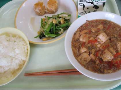 今日から12月です。寒い日も増えてきました。寒くなると、体のめんえき力がさがり、ウィルスに抵抗する力が弱くなります。手洗い、うがいをしっかりして、たくさん食べて免疫力をましょう。今日の「マーボどうふ」には、赤みそが使われていました。味噌風味の優しい味の「マーボどうふ」でしたね。
