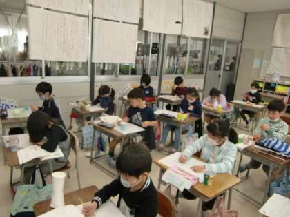 国語科の学習その2(2年生) 公開日 2020/12/02 更新日 2020/12/02 2年生 おもちゃを作った後は、おもちゃの作り方をワークシートに書き込んだり、気がついたことを話し合ったりしました。作り方を書くときのポイントなどをしっかりと学習することができました。