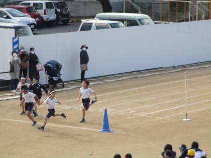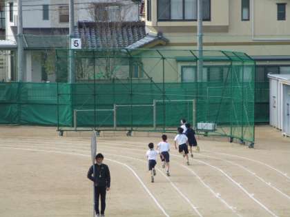 4年生が100m走記録会を行いました。校舎改築工事中で、グラウンドも狭くなっています。直線で100mをとることができないことから、トラックを利用した100mコースを作成し、記録会を行っています。外側のレーンになると、前を気にせずに自分のペースで走ることができるからいいという声がある一方で、後ろからの足音が気になりペースが乱れるとの声が聞かれます。これが内側のレーンになると、目標があっていいという声がある一方で、力が入りすぎてフォームがバラバラになるとの声が聞かれます。真ん中が走りやすいのでしょうか。