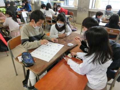 外国語活動でカードゲームをしました。英語で上手に色と形を発音することができるようになってきました。