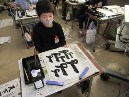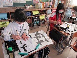 1限目に書初め練習を行いました。「は」と「る」の結びの難しさを感じながら、筆の運びを練習しました。