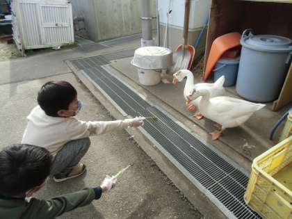 ファミリーでえさやりに挑戦(1年生)