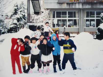 堀川小学校 いま・「むかし」 たくさんの雪!