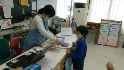 どの本を読もうかな(1年生) 公開日 2020/12/18 更新日 2020/12/18 1年生 冬休み中に読むことができる本の貸し出しが始まりました。 2学期もたくさんの本に親しんだ1年生の子どもたちです。5冊も借りることができるのをとても楽しみにしていました。 興味のある本を手に取り楽しそうに本を選んでいました。