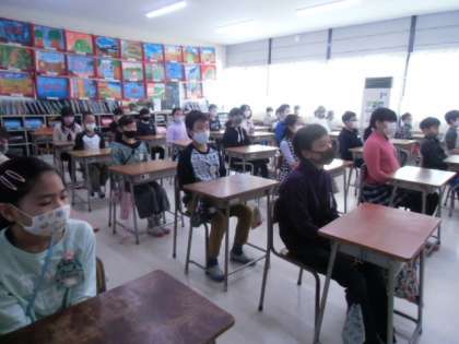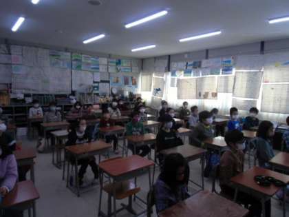 各教室で参加しました。校長先生のお話から、2学期を振り返り、仲間とのつながりを感じました。