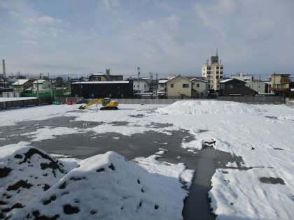工事再開を前に、雪に覆われている現場はとても静かです。