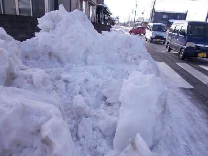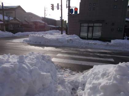 通学路の様子(オレンジコース) 公開日 2021/01/16 更新日 2021/01/16 通学路 踏切の歩道に雪が積もっています。また、オレンジコースの横断歩道が、雪でとても見えづらくなっています。歩く時は、よく見て歩く必要があります。 交差点では、道路の除雪された雪が小山になっているところがあります。