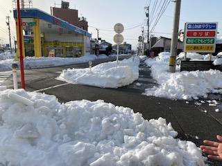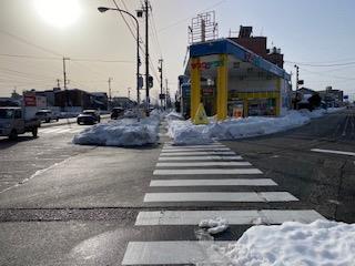 気温が上がったことで溶けた雪は固く、地面はツルツルでした。朝、横断歩道を渡るときは、滑らないように気をつけて歩きましょう。