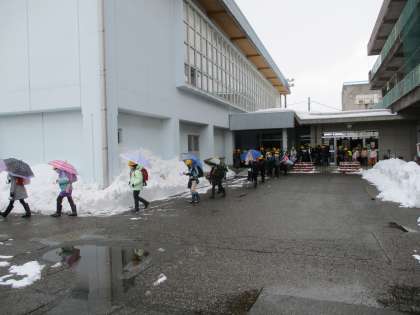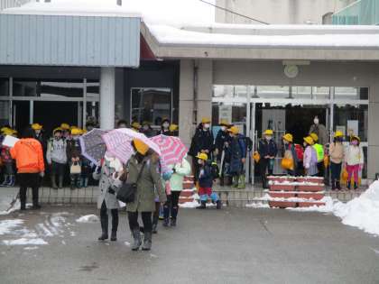 今日も集団下校でした。子供たちは、近隣ファミリー会が行われる場所に集まり、町内毎に家路につきました。